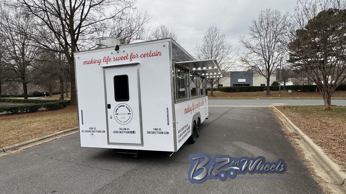 As we transition into a new season, we have been taking private orders, and going out on the truck less. With that in mind, we have decided to sell our mobile kitchen. If you are interested, or know someone that is interested in purchasing our food trailer, please call or text to us at 828-201-2793 or email us at hello@onesweetfarm.com. Details about our mobile kitchen are below: